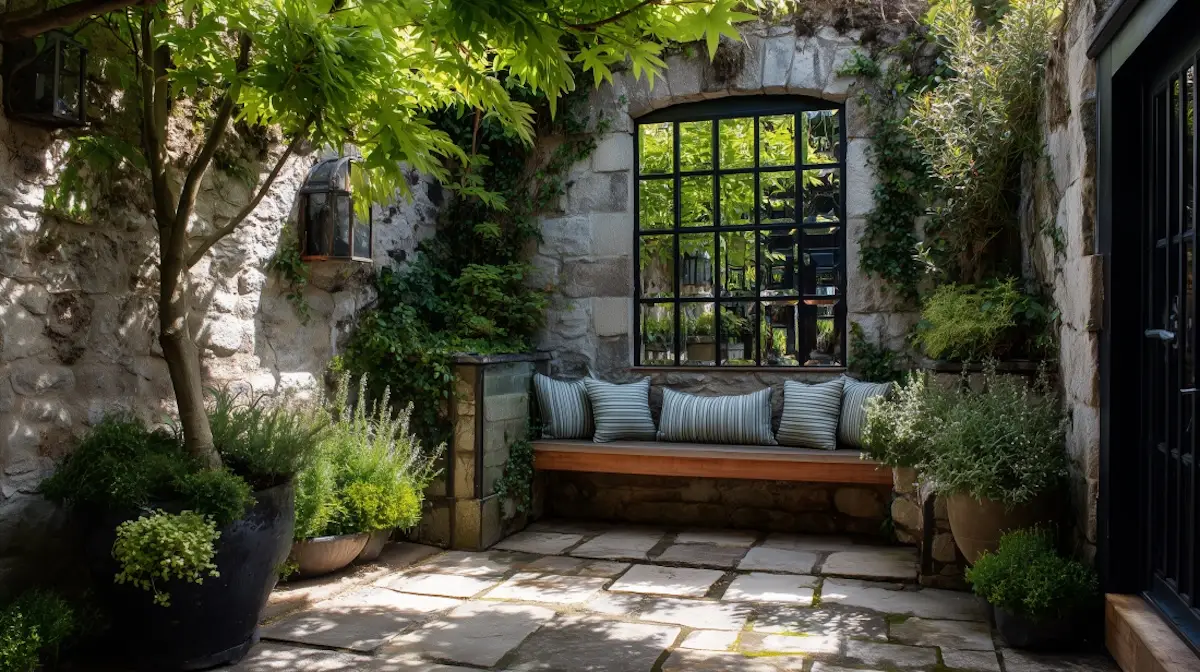 A courtyard garden is usually a flat garden enclosed by walls or buildings. Depending on your taste, you can transform a courtyard into a contemporary, rustic or bohemian space.