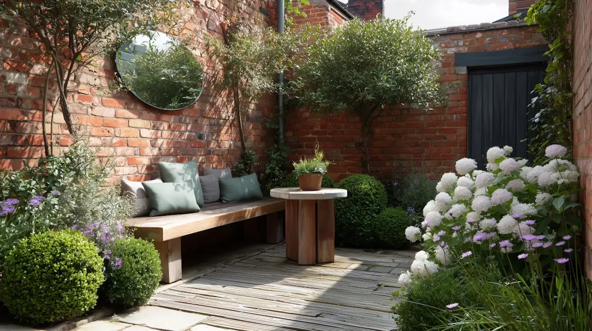 Courtyard garden styles are defined by a flat surface surrounded by walls or buildings. It’s imperative to ensure that your courtyard feels charming and cosy. Making a feature of the brick walls by either creating a distressed appearance or painting them will add instant character or a pop of colour. Go vertical with your planting to add interest and introduce texture or colour through pots. Because enclosed spaces often lack natural sunlight, lawn growth may be difficult, so a paved or decked terrace is often a wise option. Outside mirrors and lighting are other ways to help banish dark corners. The in-house design team at Acacia Gardens has created a list of ten courtyard garden features you’ll want to include.