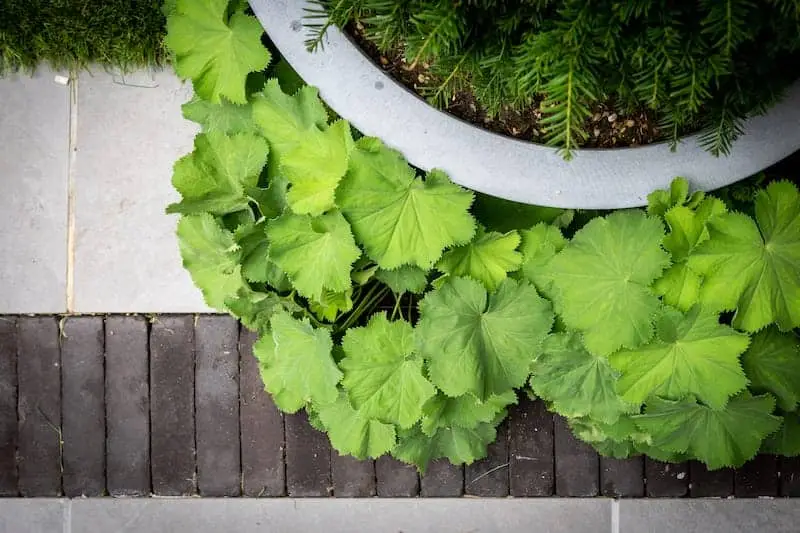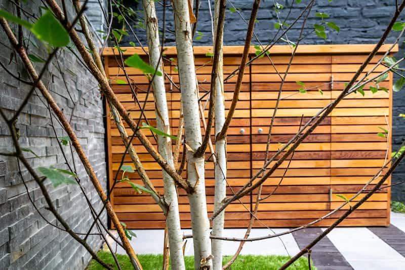The neighbours overlook the garden, so the trellis helps provide privacy for the client. It also offers an additional layer of security, an essential element for any homeowner, particularly in an urban setting. The red cedarwood matches the shed for cohesiveness. It also provides a backdrop for trailing plants.