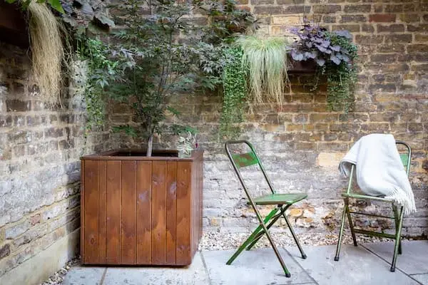 Acacia Gardens has completed a low maintenance courtyard construction project in Hackney E5. The landscaping brings Sarah Kay’s stunning garden designs to life as she maximises the potential of a compact London courtyard, making it a beautiful place to relax and entertain. We were responsible for the construction part of this project, including patio installation, building a retainer wall with seating, installing a perimeter fence and crafting a bespoke storage cupboard. The result is a beautiful low maintenance garden that is dog friendly and perfect for socialising with friends and family.