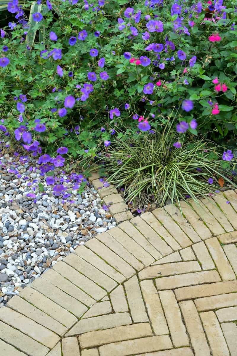 We constructed a gracefully curved, self-bonded gravel pathway that guides you through the garden, starting at the kitchen and house extension patio and winding through lush planting, ultimately connecting the front and rear patios. This curved pathway complements the patios’ overall design using self-bonded gravel, ensuring the gravel remains securely in place. Rustic-style bricks border it for added charm. Unlike traditional loose gravel, self-binding gravel is a blend of small stones, sand and clay particles that naturally adhere together. It creates a durable, stable surface that resists shifting, making it the ideal choice for walkways and pedestrian areas.