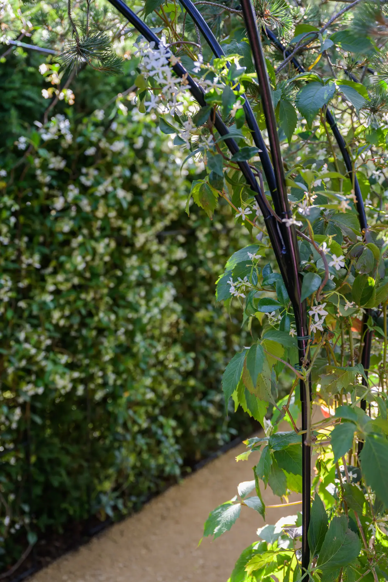 Metal arches with scented climbers and gravel paths enhance the romantic nature of Galician gardens. At the same time, granite paving reflects typical local materials, using familiar shrubs and perennial species that pay homage to Galicia’s dense, ancient forests.