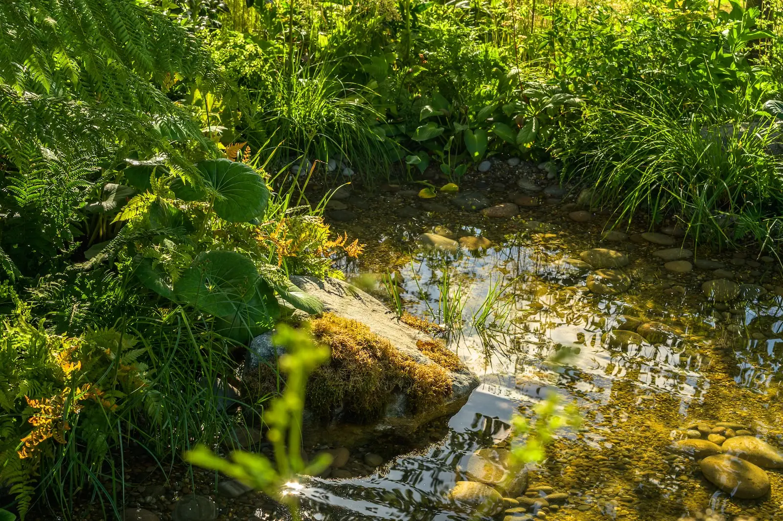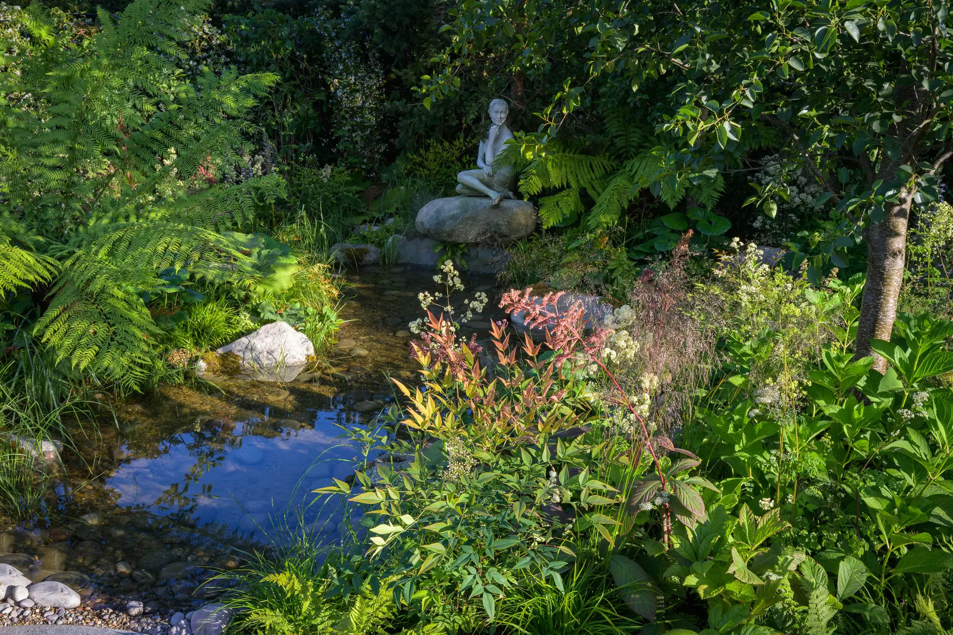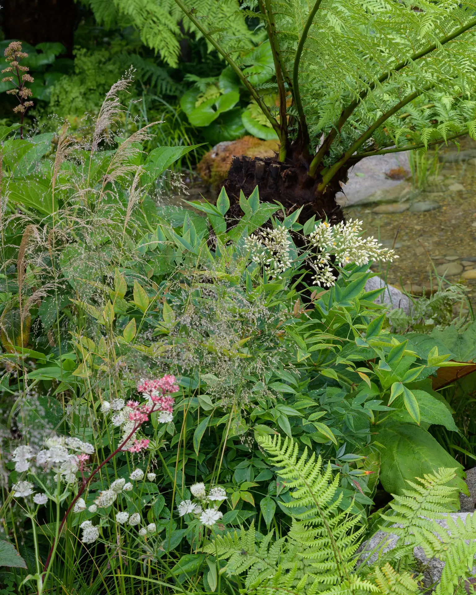 The show garden construction aimed to establish a mature look for the landscape foliage and planting. Simultaneously, with its carefully placed stones and rocks, the water feature was designed to appear natural, enhancing the garden’s relaxing and soothing appeal.