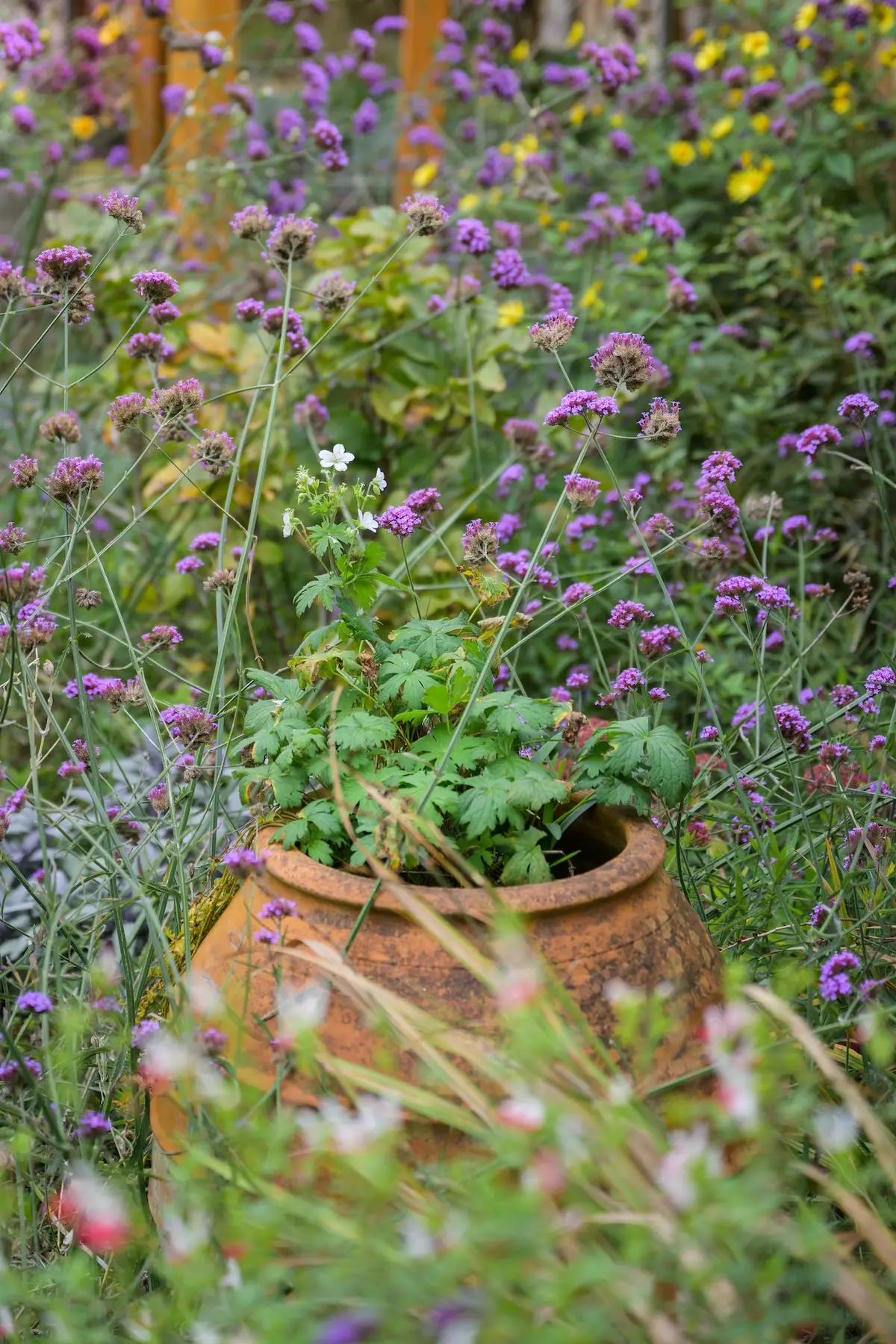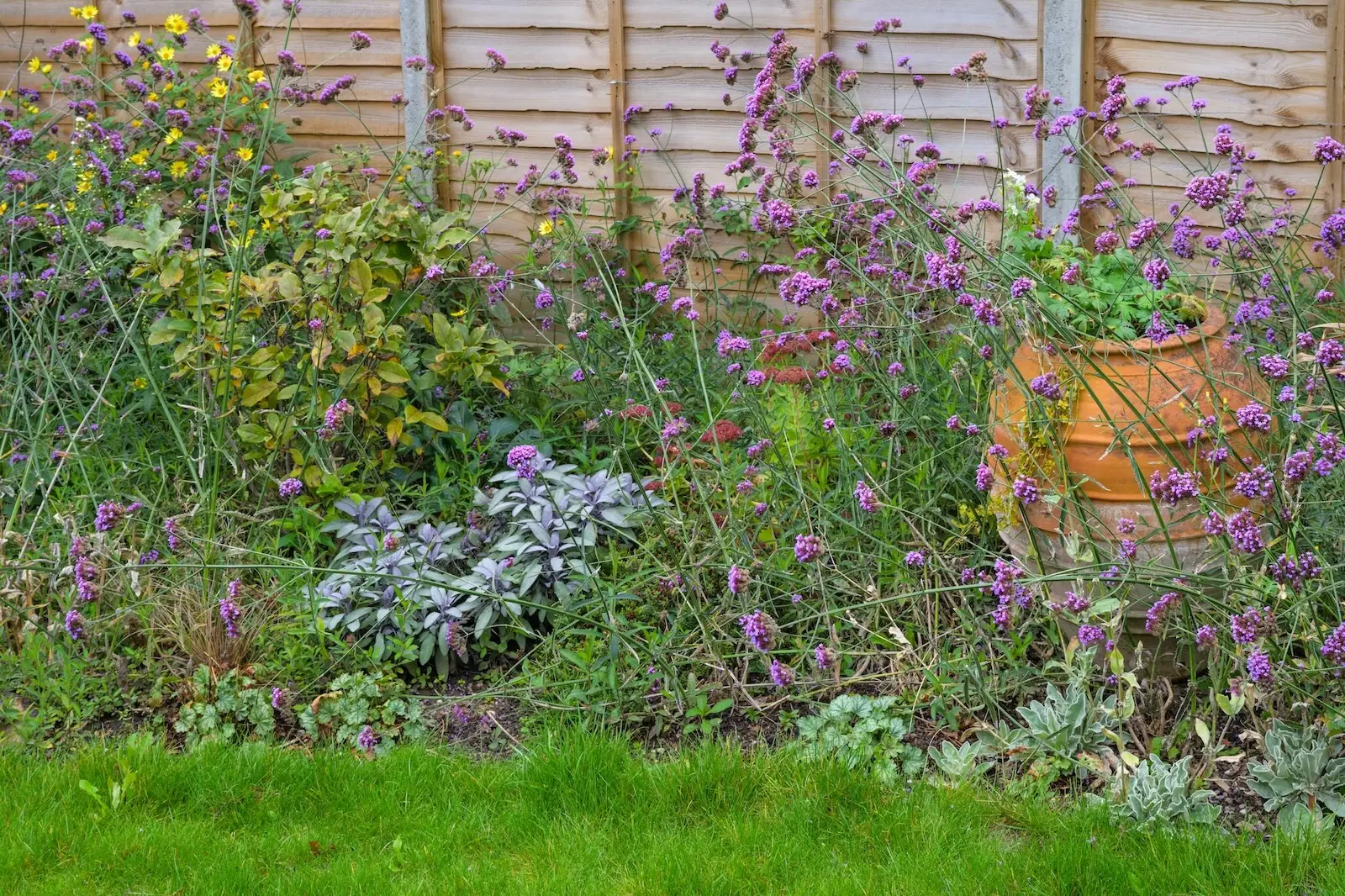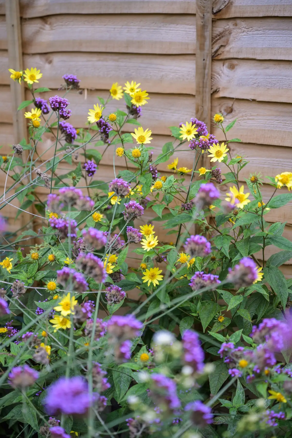 The planting scheme was designed to attract wildlife by offering pollinators and other creatures food, shelter, and habitats. Tall perennials like Verbena bonariensis and nectar-rich Salvia microphylla entice butterflies and bees in the warmer months while existing mature shrubs provide essential winter food for birds. Ground cover plants near pathways encourage biodiversity and add texture to the design.